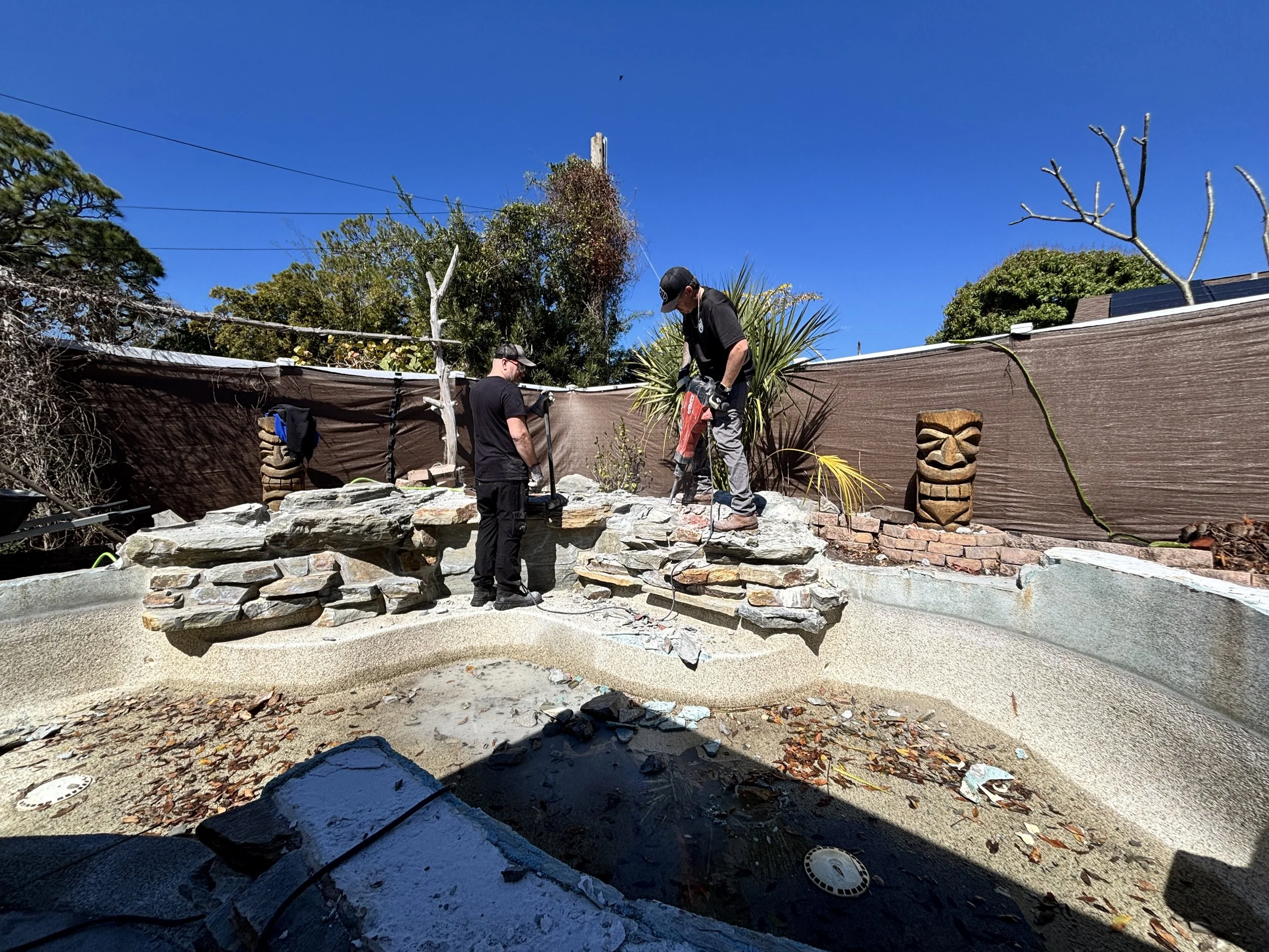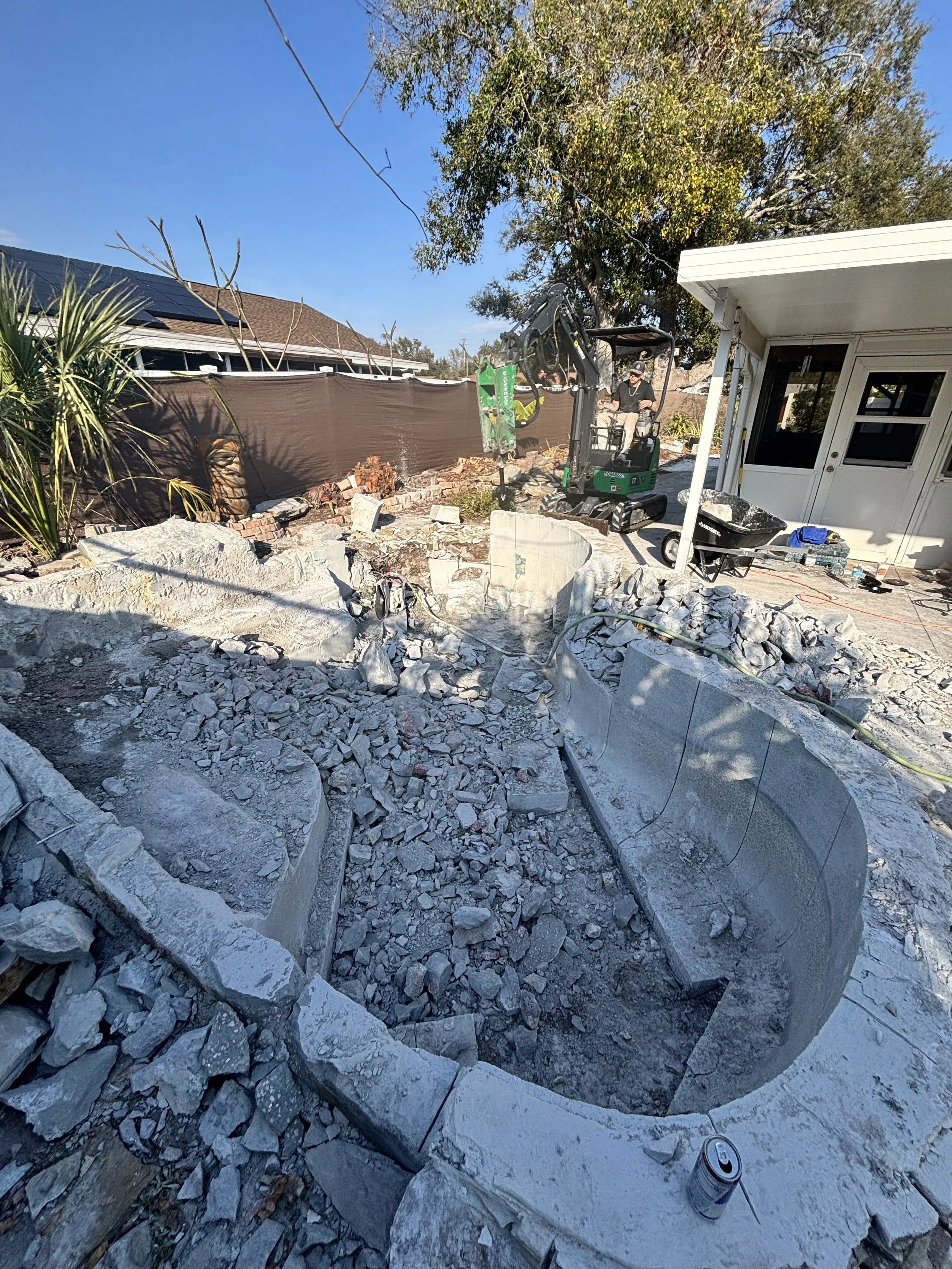 Complete removal of the pool shell with concrete breakup, hauling, and backfill options for a clean finish.